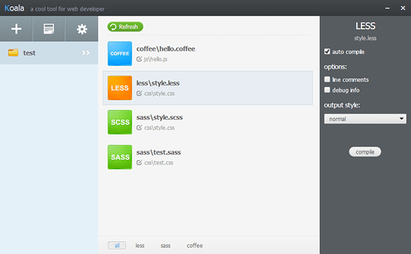 Support for Less,Sass, CoffeeScript and Compass Framework. -